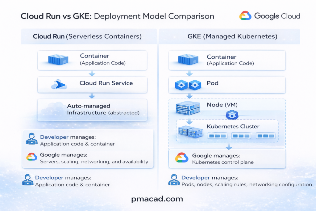 In essence, Cloud Run is automation-first, while GKE is control-first. Cloud Run is “containers without infrastructure thinking,” whereas GKE is “containers with full responsibility and flexibility