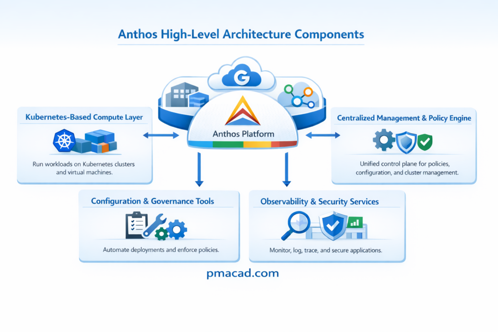 At its core, Anthos is built on Kubernetes, enabling containerized workloads to run anywhere with uniform governance, security, and observability.